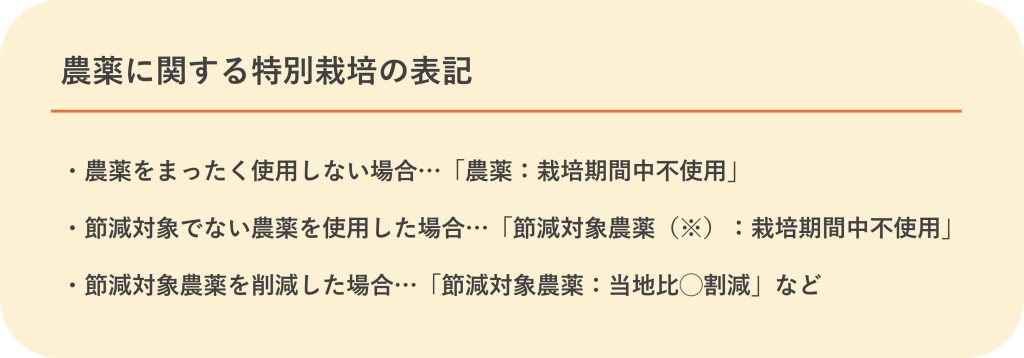 とはいえ、農家が努力して農薬や化学肥料の使用を減らして栽培しているにもかかわらず、その取り組みを販売時にアピールできないのでは、報われません。また、消費者にとっても、農薬や肥料の使用状況は購入時の重要な判断材料のひとつです。