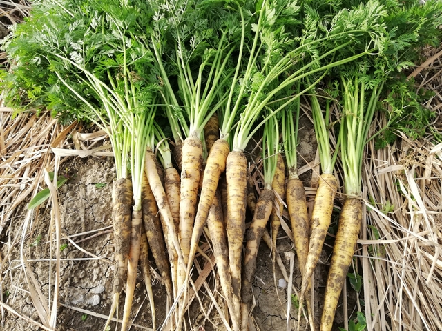 細長く黄色い人参で、甘みがあり煮崩れしにくい。煮物やしりしりに最適。βカロテンが豊富で免疫力をサポート。