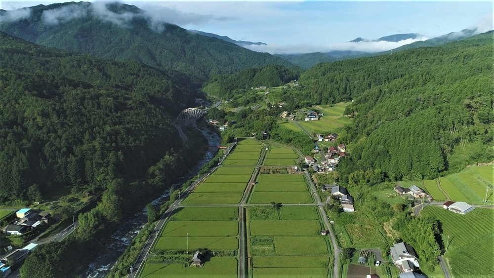 国土の多くを山地や丘陵が占めているため、平坦で広い農地を確保しにくく、農地は川沿いや集落周辺に点在するかたちで発展してきました。その結果、1枚あたりの圃場が小さく、不整形になりやすいという特徴があります。